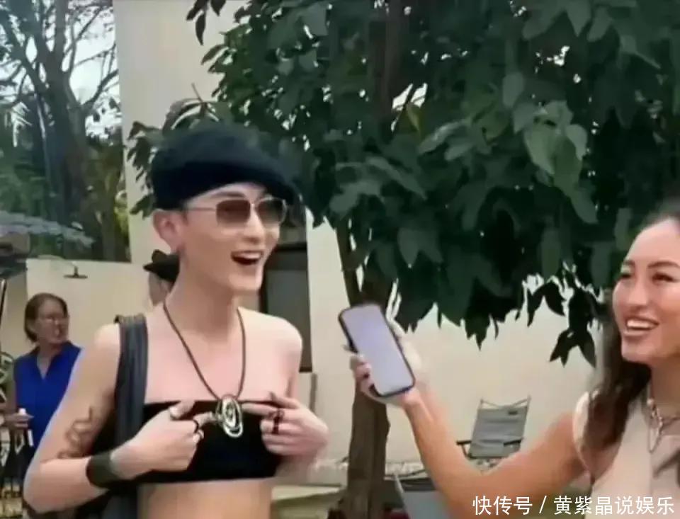 她一稔一件热辣的玄色背心,戴着玄色贝雷帽,和墨镜,看起来很酷,超等娴雅个性。她皮肤依旧皎洁,险些瘦脱相,上半身瘦骨嶙峋,是皮包骨头,瘦到让东谈主担忧。